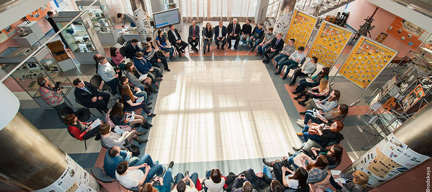 Бренд университета: Во время встречи поступило несколько предложений по внутреннему оформлению вуза, информационным материалам и различным системам информирования, которые студенты хотели бы изменить или создать с нуля. Алевтина Анатольевна рассказала собравшимся, что сейчас идет активная работа над новым брендом университета, которую возглавляет Владимир Пирожков — эксперт мирового уровня, директор Инжинирингового центра прототипирования высокой сложности. Поэтому, чтобы все было в едином стиле работа, надо подождать завершения этого проекта. Однако желающие принять участие в процессе могут делиться своими соображениями, выдвигать предложения, так как это общая работа, и любая инициатива только приветствуется.