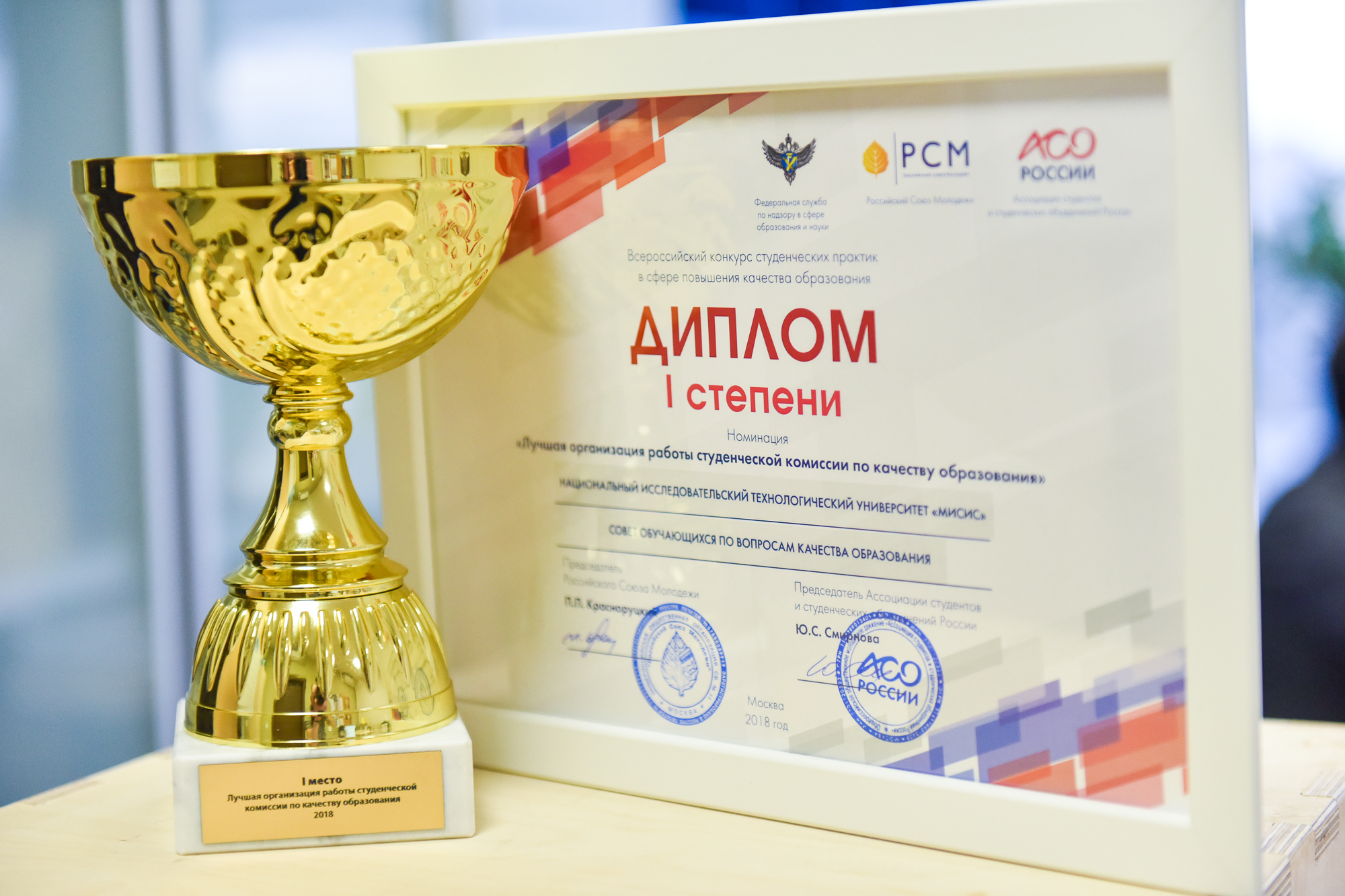 НИТУ МИСИС занял первое место на Всероссийском конкурсе студенческих практик в сфере качества образования в номинации «Лучшая организация работы студенческой комиссии по качеству образования».