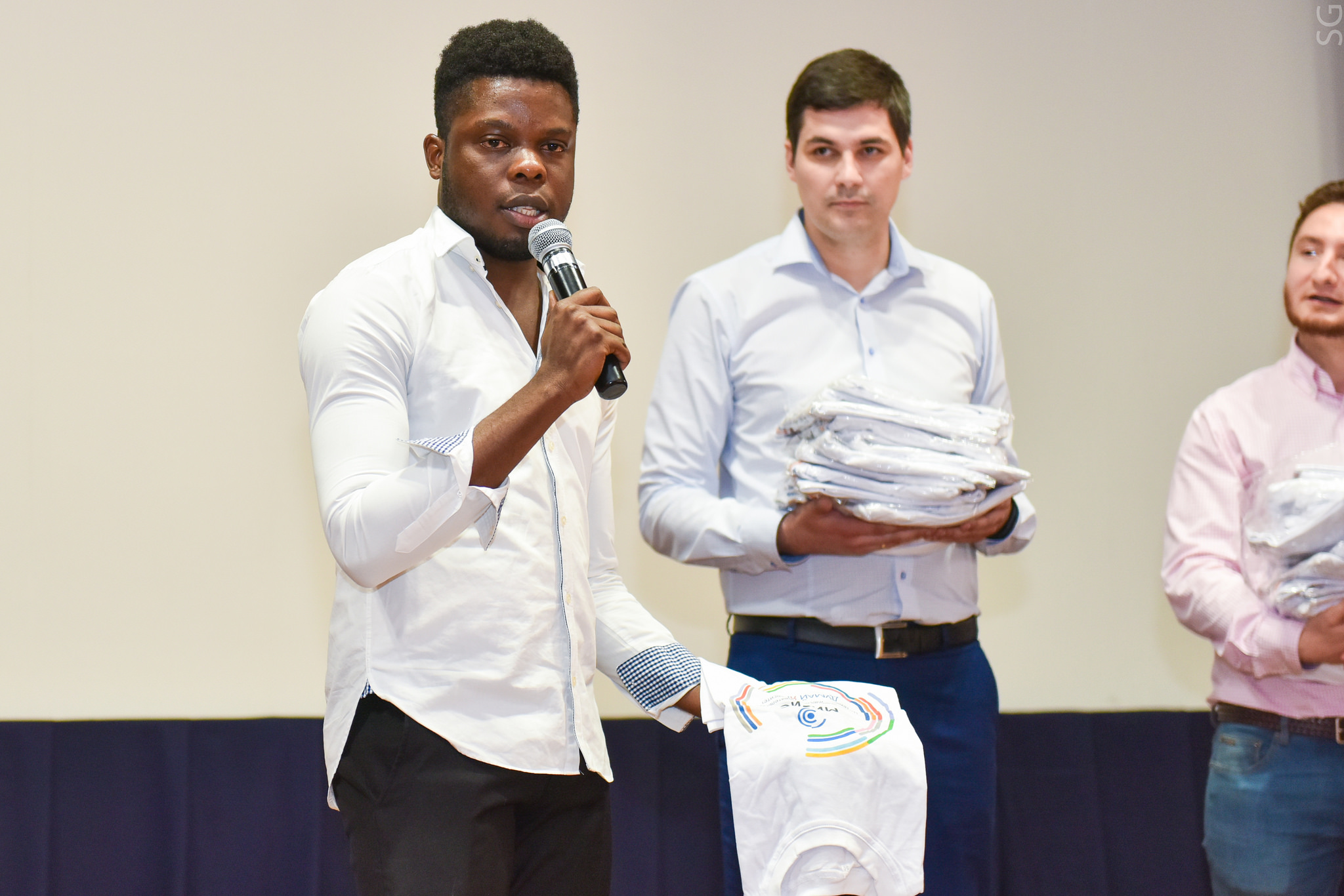 Масамба Ках, руководитель магистерской программы по солнечной энергетике, поприветствовал участников и гостей праздника в своем видео-обращении. По случаю Дня Африканского союза Управление международной академической мобильности (УМАМ) подготовило небольшой подарок для самых активных членов объединения — памятные футболки с логотипом университета.