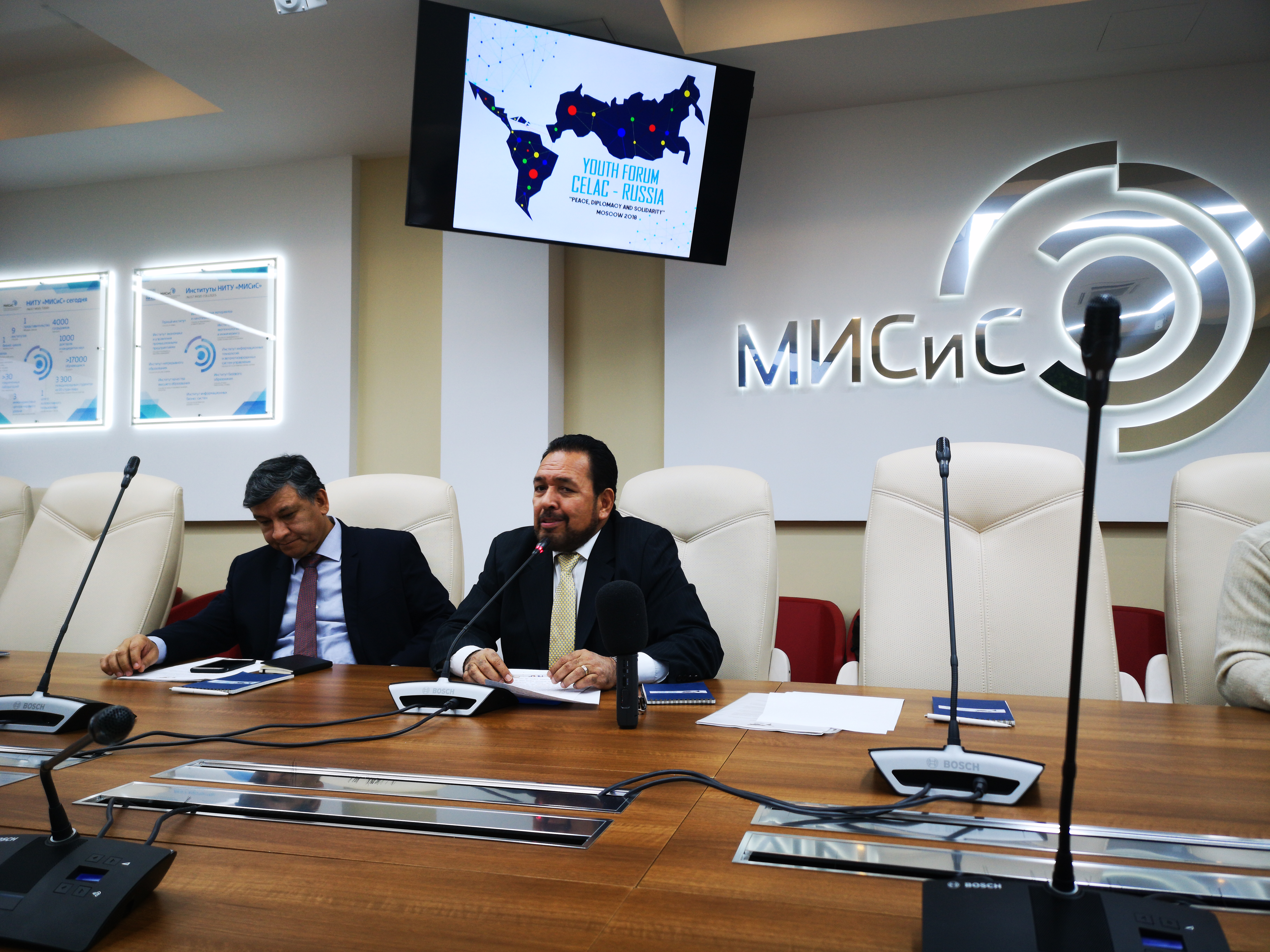 В НИТУ «МИСиС» прошла встреча с членами организационного комитета первого Молодежного форума сообщества стран Латинской Америки и Карибского бассейна (СЕЛАК) — Россия 2018. На мероприятии присутствовали представители НИТУ «МИСиС», оргкомитета Всемирного фестиваля молодёжи и студентов-2017 и почетные послы Многонационального Государства Боливия и Республики Сальвадор в Российской Федерации.