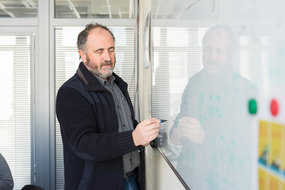 Дмитрий Московских, директор НИЦ «Конструкционные керамические наноматериалы» стоит в лаборатории около оборудованияДмитрий Московских, директор НИЦ «Конструкционные керамические наноматериалы» стоит в лаборатории около оборудования