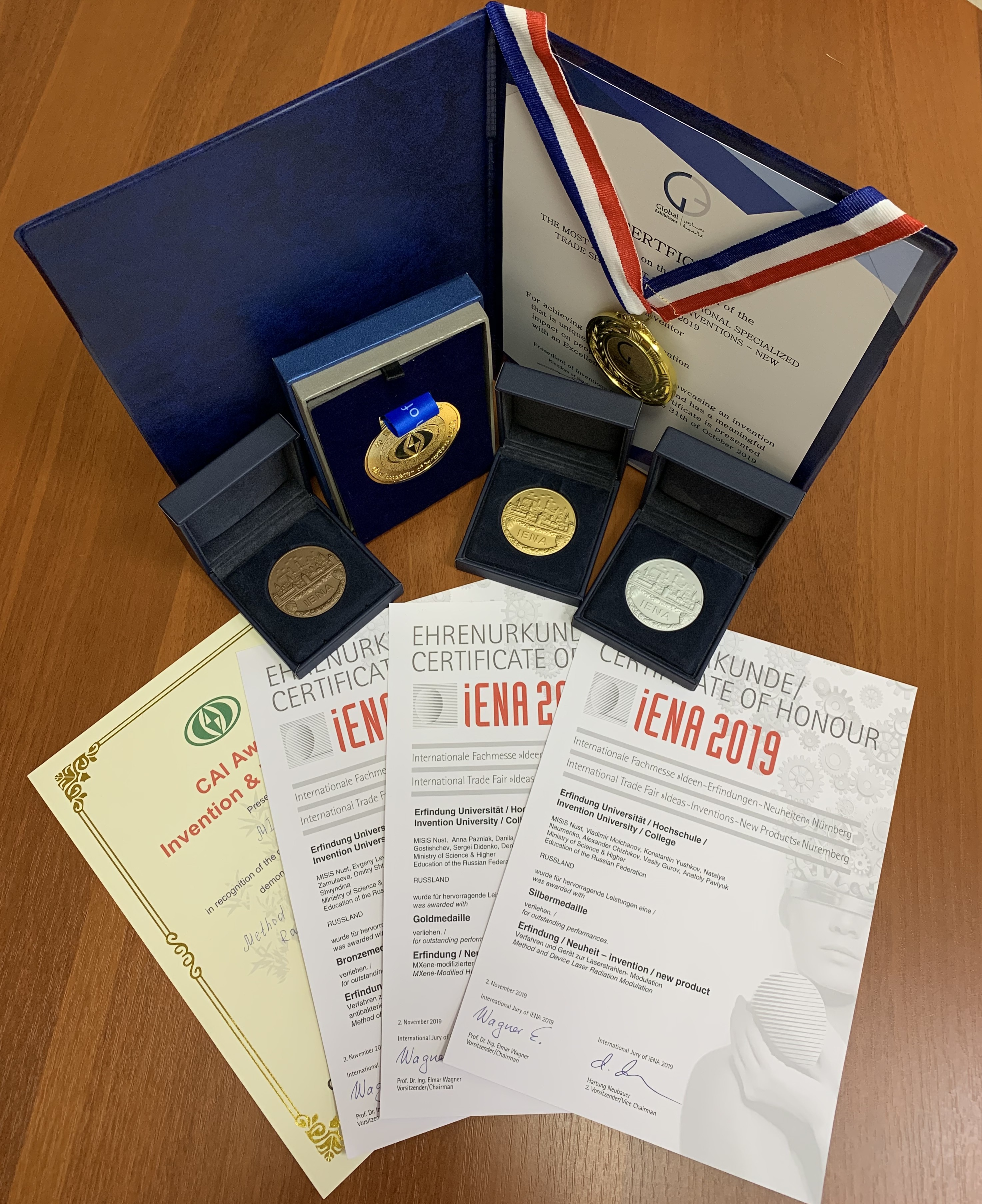 Разработки ученых НИТУ «МИСиС» получили 4 медали — 2 золотые, серебряную, бронзоваую, а также специальный приз — по итогам 71-ой Международной выставки «Идеи — Изобретения — Новые Продукты» iENA-2019 (Германия, г. Нюрнберг).