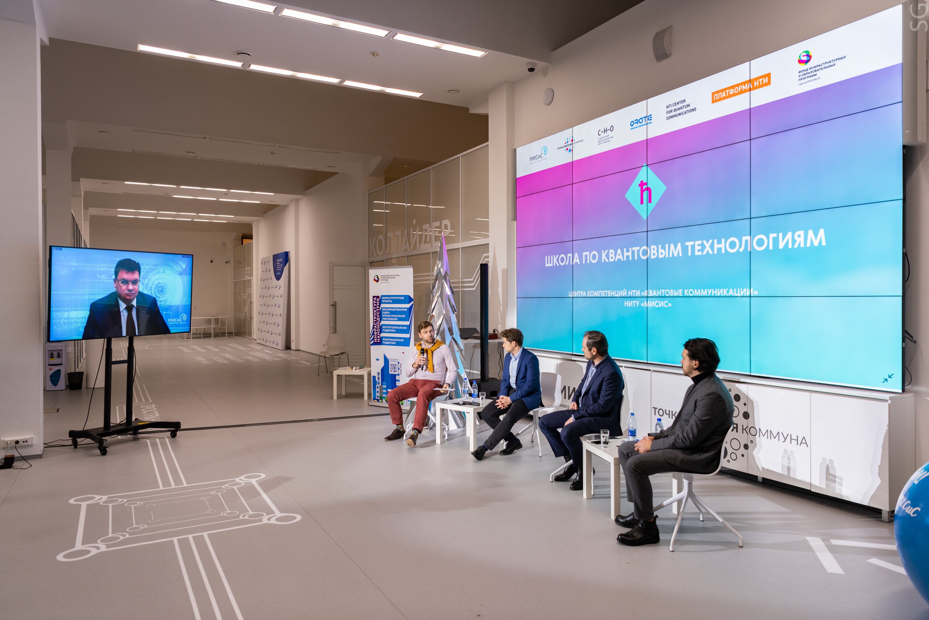 Во второй день интенсива состоялась важная пленарная дискуссия о перспективах квантовых технологий в России. В 2020 году в рамках национального проекта «Цифровая Экономка» стартовали дорожные карты развития, которые помогут вывести Россию в лидеры на новых рынках. Тему обсуждали первый проректор «Национального исследовательского технологического университета «МИСиС» Сергей Салихов, заместитель начальника департамента квантовых коммуникаций (ЦКК) ОАО «РЖД» Павел Дорожкин, директор Департамента по управлению цифровыми активами ГПБ (АО) Алексей Лосев и руководитель группы «Квантовые информационные технологии» Российского квантового центра Алексей Федоров. На обсуждении также присутствовал декан факультета сети и системы связи «Московского технического университета связи и информатики» МТУСИ Юрий Миронов. Модерировал дискуссию директор Центра Компетенции НТИ «Квантовые коммуникации» НИТУ «МИСиС» Юрий Курочкин.