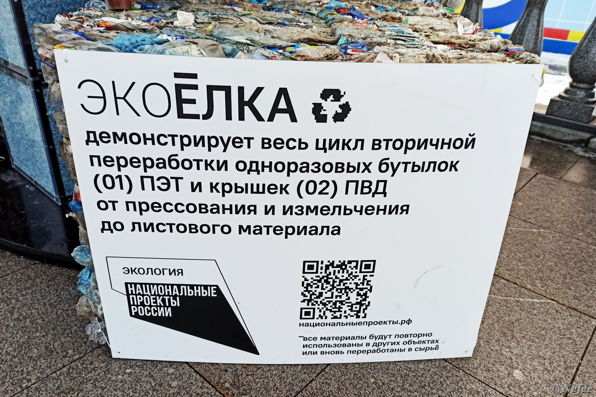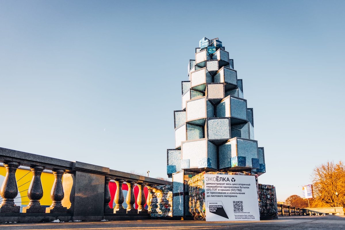 Магистрантка программы «Технологии и материалы цифрового производства» НИТУ «МИСиС» Буляш Тодаева создала для Парка Горького Экоёлку — арт-объект, демонстрирующий весь цикл вторичной переработки одноразовых пластиковых бутылок. На изготовление пятиметровой елки ушло три недели и более 1200 килограммов пластика. Для производства был использован пластик, собранный на комплексах по переработке отходов Московской области.