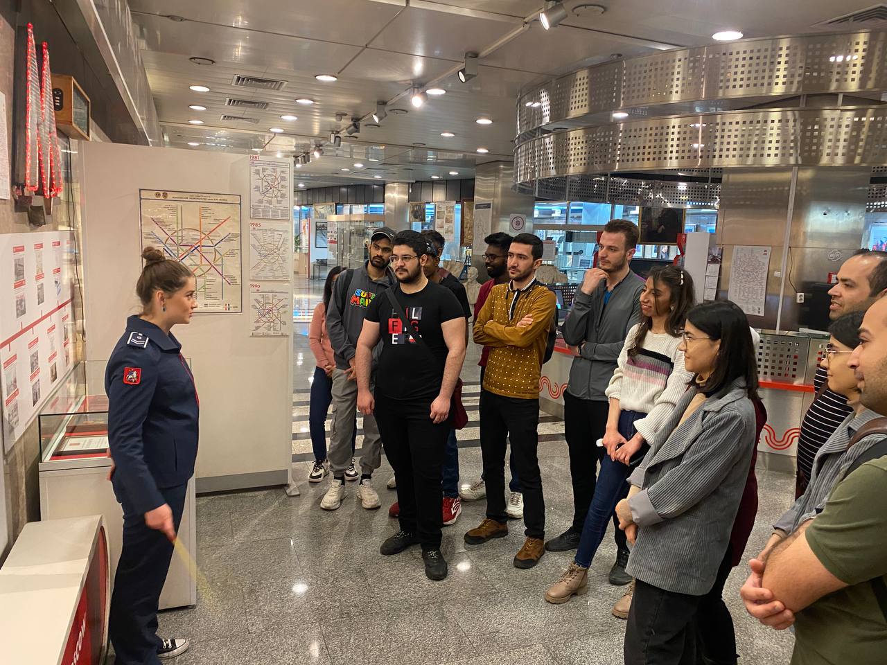 Студенты-иностранцы узнали об истории и строительстве московского метрополитена с помощью интерактивных экспонатов, исторических документов и фотографий.