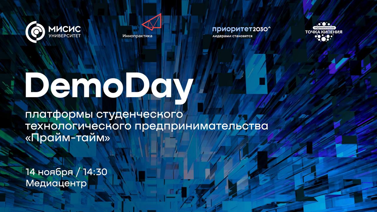Университет МИСИС приглашает студентов и аспирантов российских вузов на DemoDay с представителями крупного бизнеса. «Газпром нефть», Splat Global, CyberPhysics, АВП «Технология», ГК «Геоскан», Cesca, Embedika и другие компании представят реальные кейсы, к реализации которых они готовы привлечь молодежные команды. Коллективы, зарегистрированные на платформе «Прайм-тайм» и предложившие наиболее оригинальные решения, получат финансирование, помощь с привлечением инвесторов и возможность трудоустройства в ведущие компании. Проект реализуется в рамках программы «Приоритет 2030» при поддержке компании «Иннопрактика».