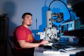 Дмитрий Московских, директор НИЦ «Конструкционные керамические наноматериалы» стоит в лаборатории около оборудованияДмитрий Московских, директор НИЦ «Конструкционные керамические наноматериалы» стоит в лаборатории около оборудования