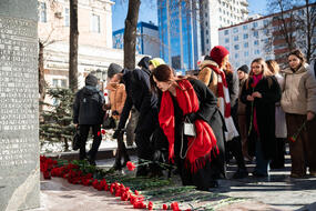 Студенты и сотрудники возложили цветы к памятнику