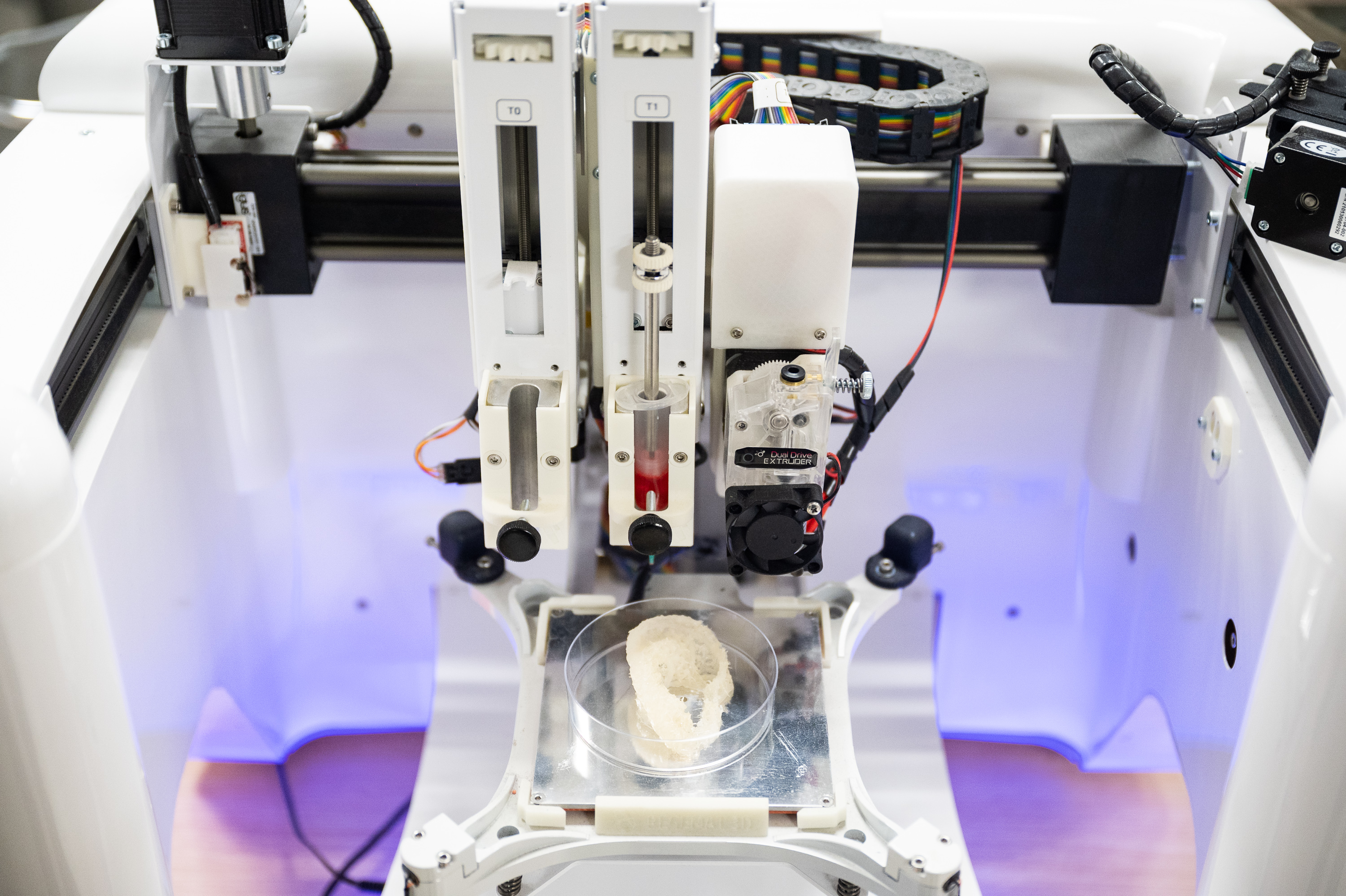 Протезы синтезируются из двух функциональных составляющих — пористого 3D-печатного каркаса и агарового гидрогеля в качестве наполнителя, сшитого феруловой кислотой. Гироидная структура полиуретанового каркаса способствует прорастанию сосудов, а интегрированные ребра жесткости обеспечивают сохранение формы под действием силы натяжения кожных лоскутов, что приближает имплантат к естественным ушным раковинам по биофизическим характеристикам. Использование аддитивных технологий также помогает решать задачу точного воссоздания формы и рельефа ушных раковин индивидуальных пациентов.